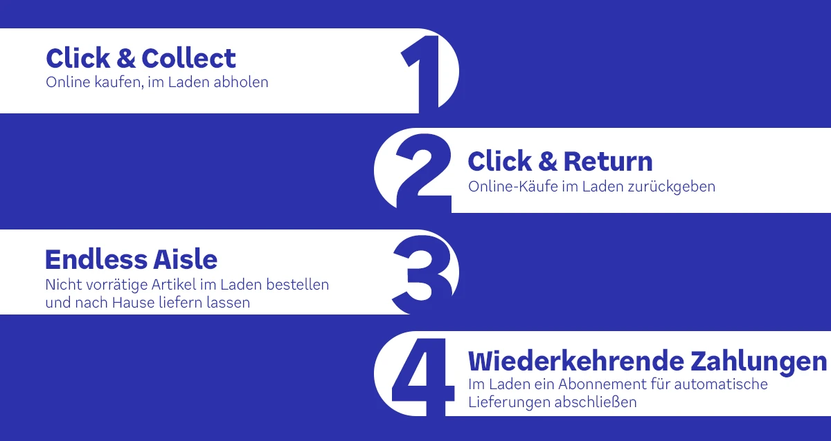 - Endless Aisle – Nicht vorrätige Artikel im Laden bestellen und nach Hause liefern lassen.
