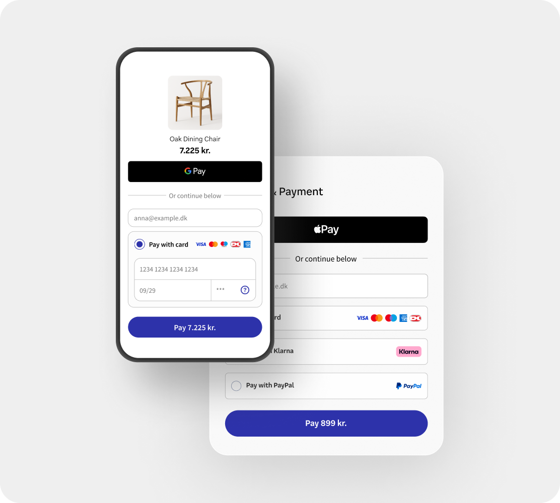 Akzeptieren Sie Zahlungen mit allen gängigen Karten, sowie den beliebtesten alternativen Zahlungsmethoden. Von mobilen Wallet-Lösungen bis hin zu Konto-zu-Konto-Lösungen.